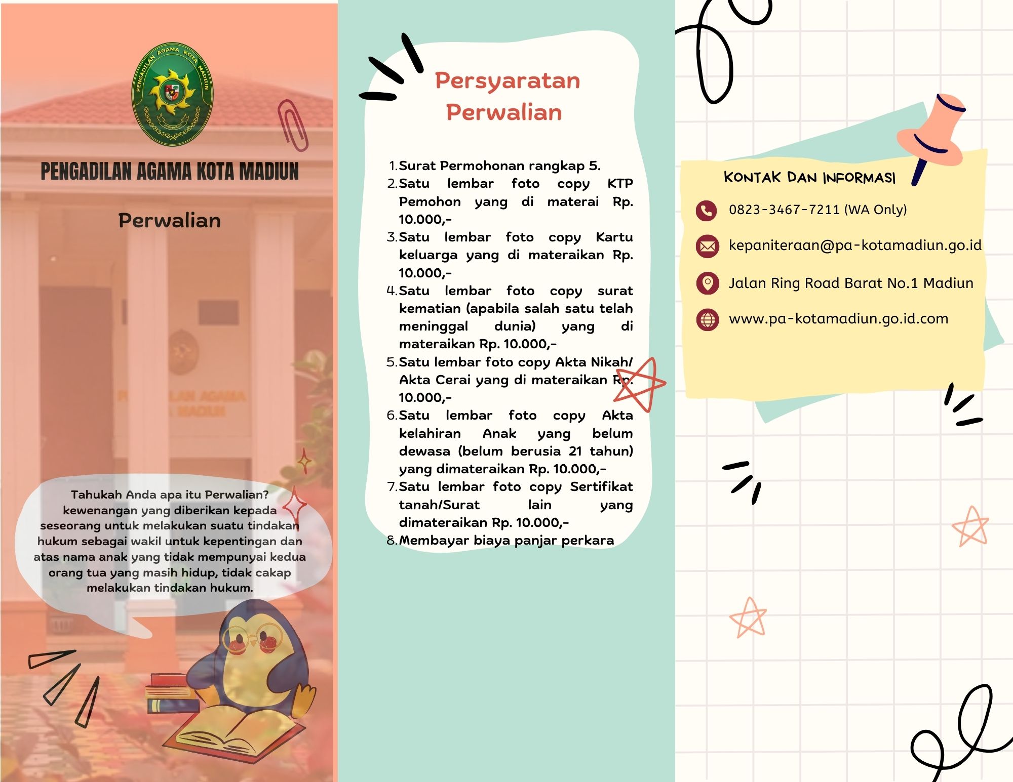 Persyaratan administrasi Perwalian di Pengadilan Agama Kota Madiun adalah: