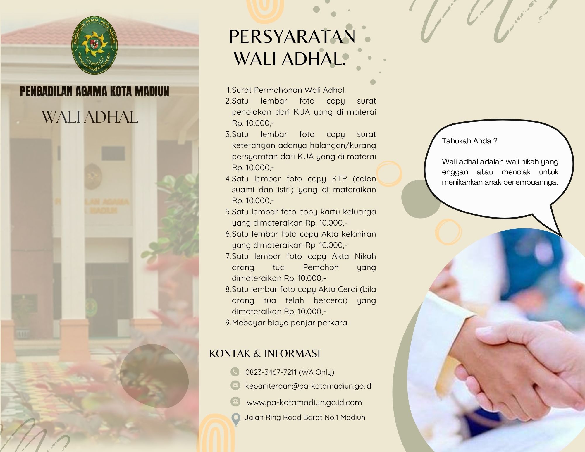 Persyaratan administrasi Wali Adhol di Pengadilan Agama Kota Madiun adalah: