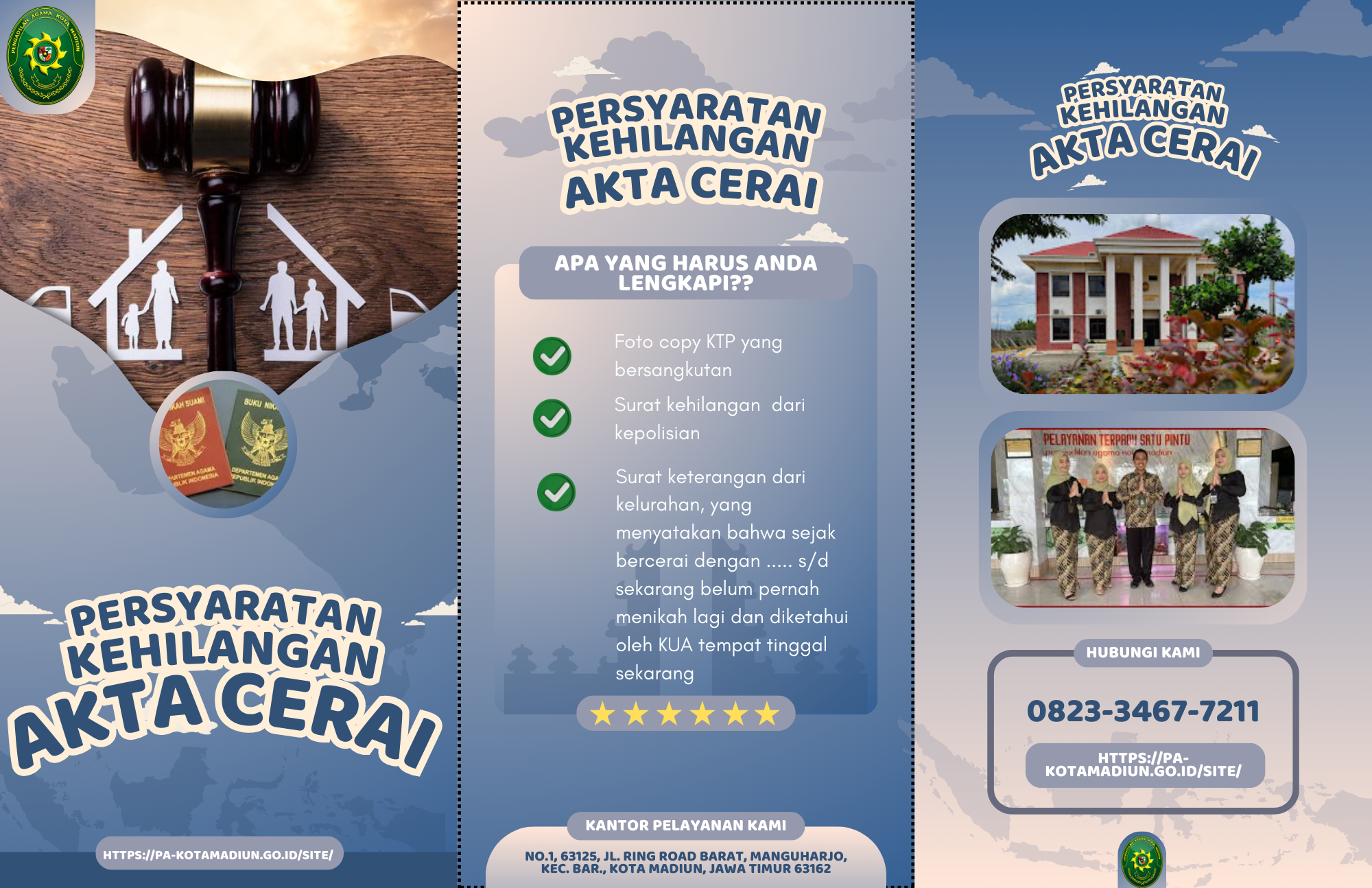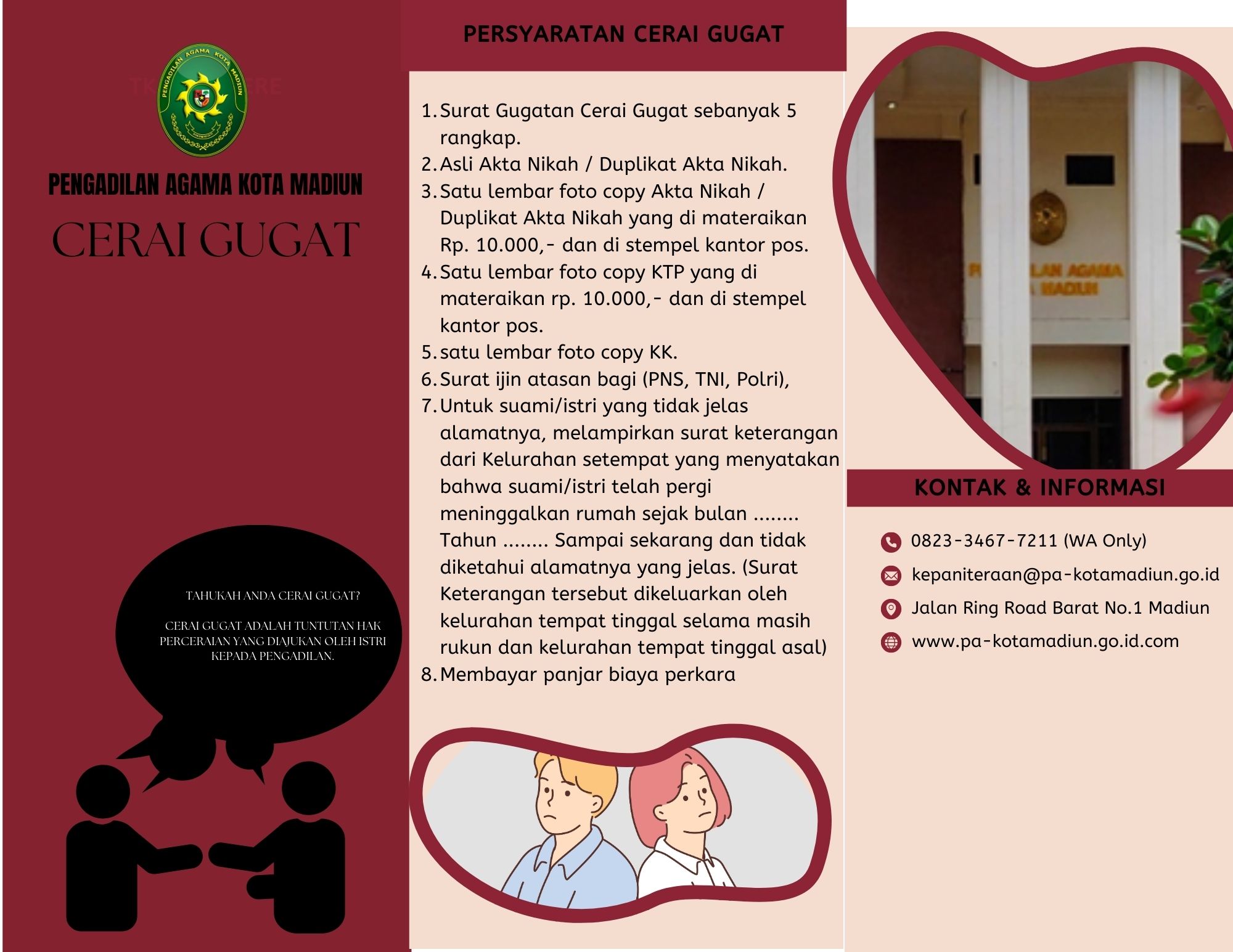 Persyaratan administrasi Cerai Gugat di Pengadilan Agama Kota Madiun adalah: