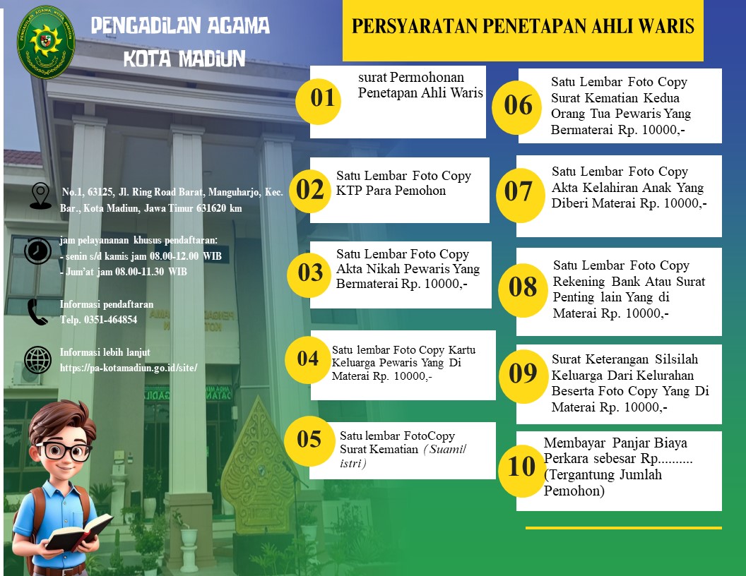 Persyaratan administrasi Penetapan Ahli Waris di Pengadilan Agama Kota Madiun adalah: