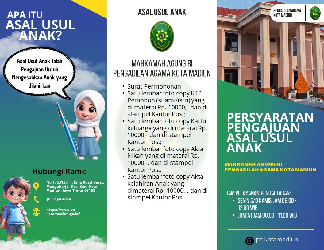 Persyaratan administrasi Asal Usul Anak di Pengadilan Agama Kota Madiun adalah: