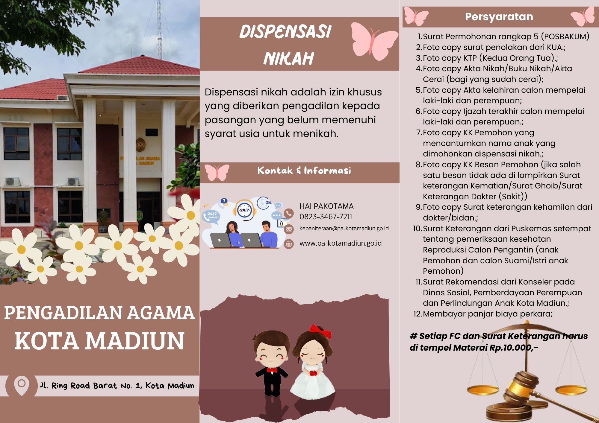 Persyaratan administrasi Dispensasi Nikah di Pengadilan Agama Kota Madiun adalah: