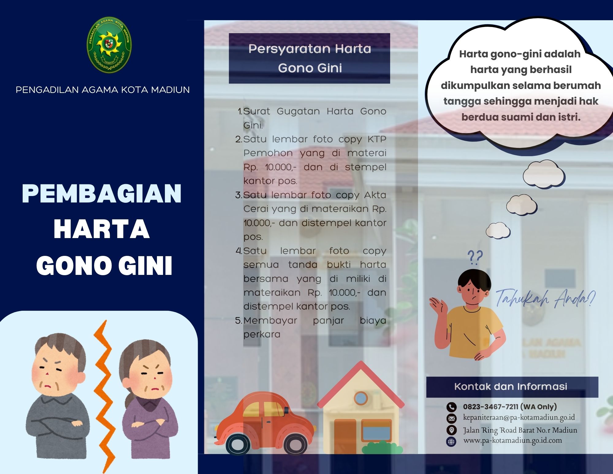 Persyaratan administrasi Harta Gono Gini di Pengadilan Agama Kota Madiun adalah: